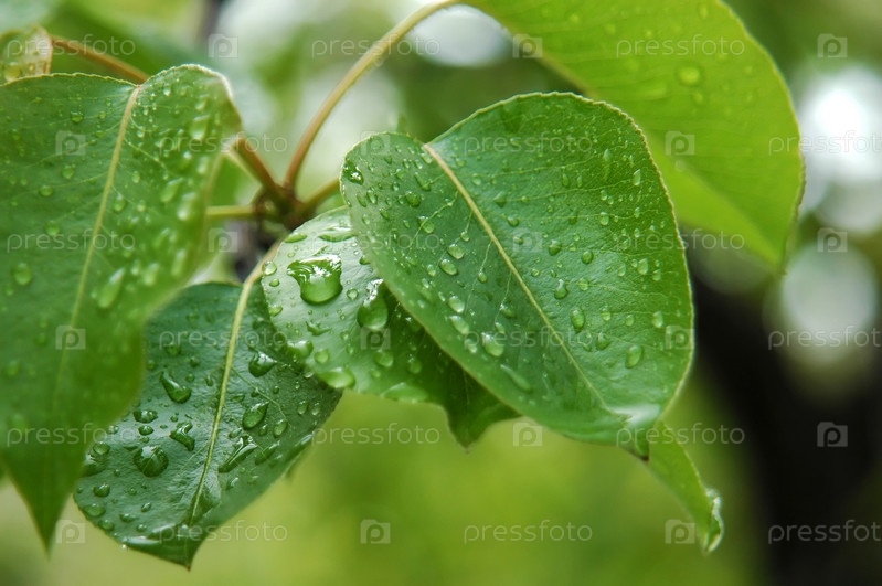 Капли дождя на листьях