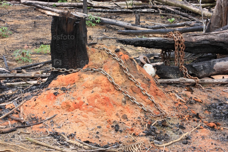Корчевание пней в выжженных джунглях во Французской Гвиане