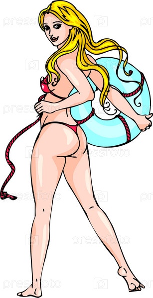 Девушка в красном купальнике со спасательным кругом