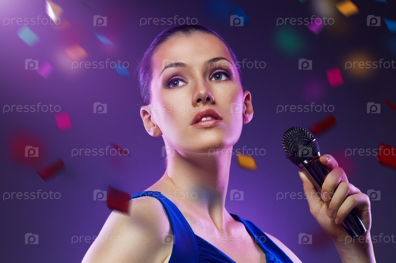 Симпатичная девушка с микрофоном в руке