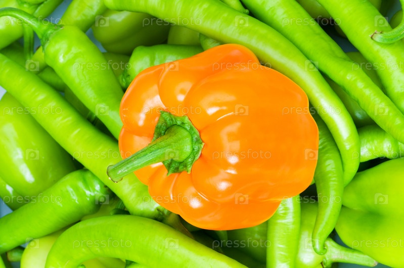 Оранжевый колокольный перец и перцы на фоне