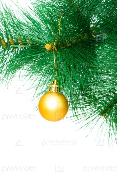 Новогоднее украшение на ветке на белом фоне