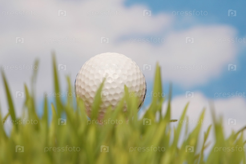 Мячик для гольфа в траве крупным планом
