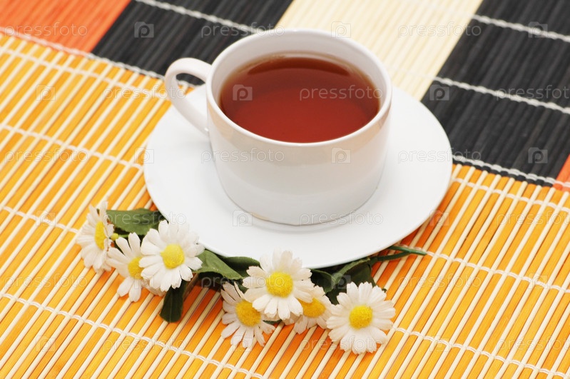 Чай с ромашкой крупным планом