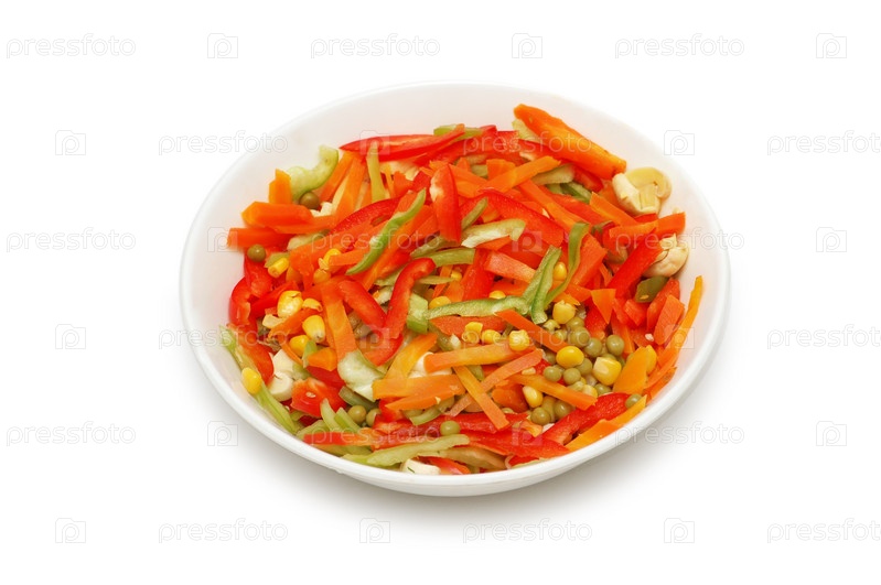 Свежий овощной салат на белом фоне