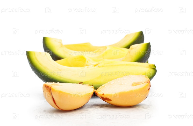 Ломтики авокадо на белом фоне