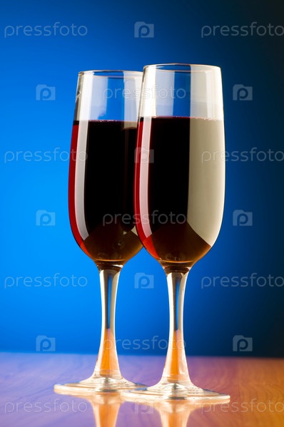 Два бокала с вином на синем фоне