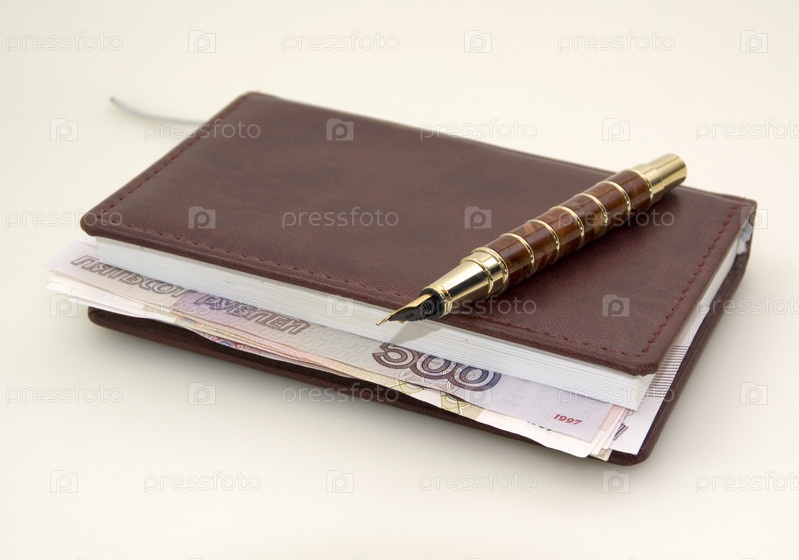 Ежедневник с рублями и красивая перьевая ручка