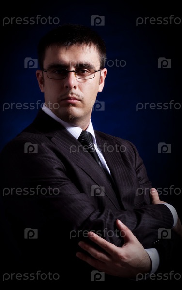 Деловой мужчина на синем фоне
