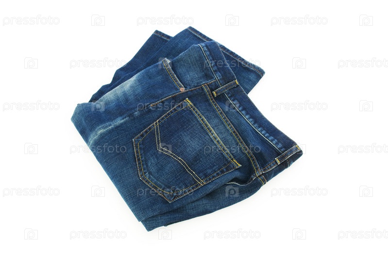 Синие мужские джинсы на белом фоне