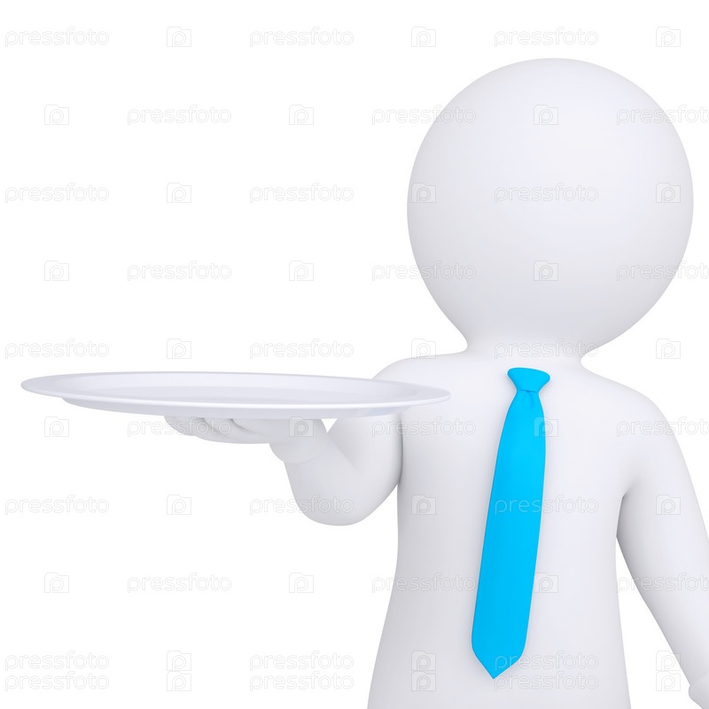 3D белый человечек держит тарелку в руке