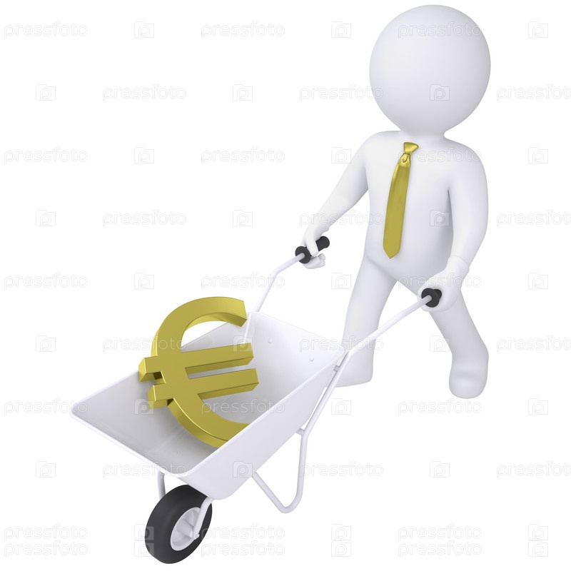 3D белый человечек с евро в тележке
