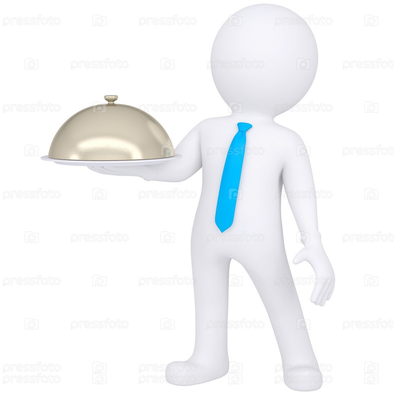 3D белый человечек с тарелкой в руке