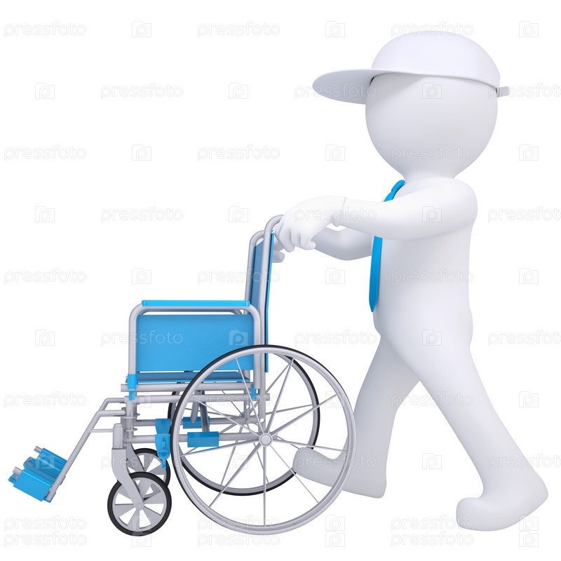 3D белый человечек в инвалидной коляске