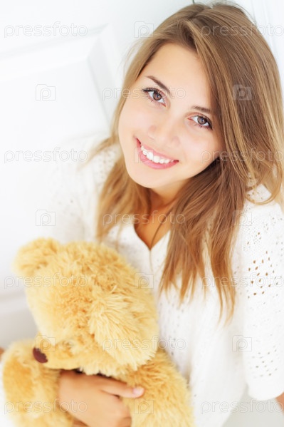 Красивая девушка с медвежонком крупным планом