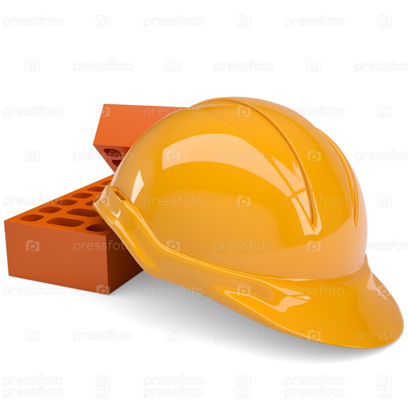 Строительный кирпич и каска