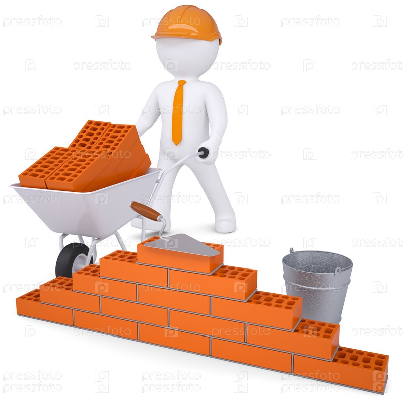 3D белый человек в шлеме строит стену