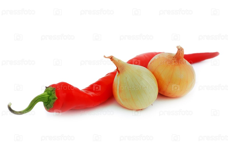 Красный перец и лук на белом фоне