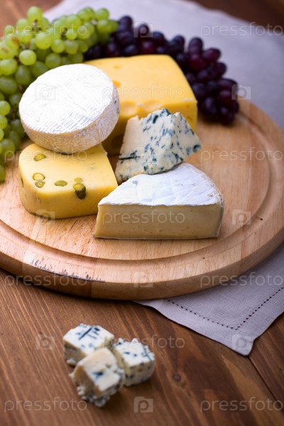 Разные сорта сыров и винограда