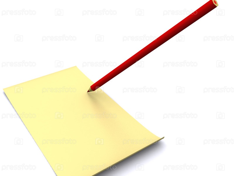 Карандаш и листок бумаги на белом фоне