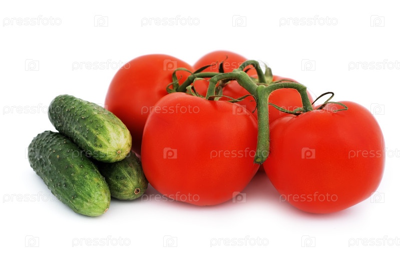 Помидоры и огурцы на белом фоне