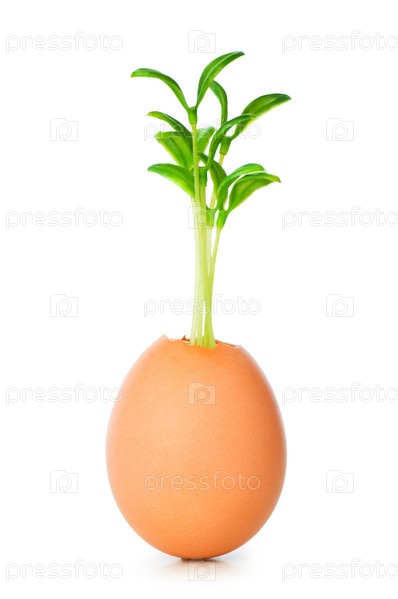 Росток в яйце на белом фоне