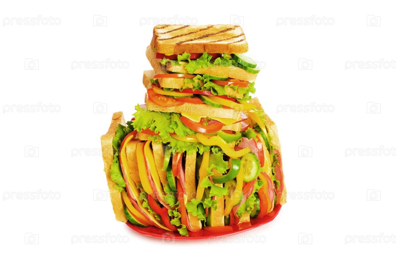 Гигантский бутерброд, изолированный на белом фоне