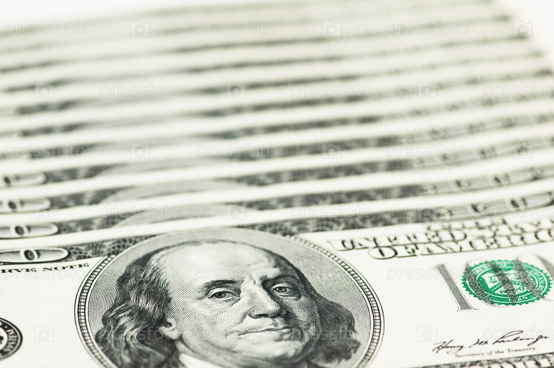 Банкноты достоинством в сто долларов, изолированные на белом