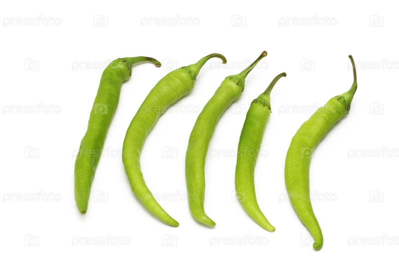 Зеленые перцы, изолированные на белом фоне