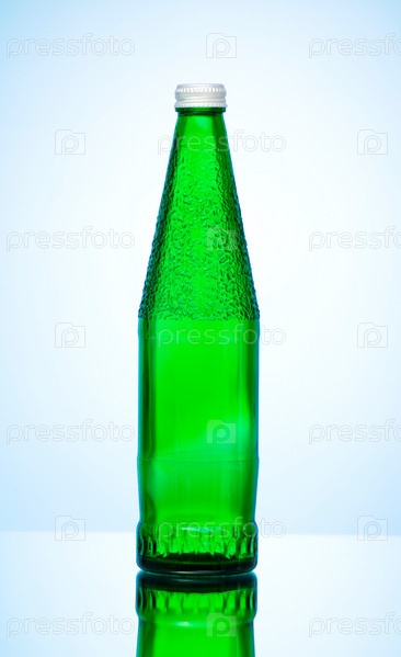Бутылка с водой на голубом фоне