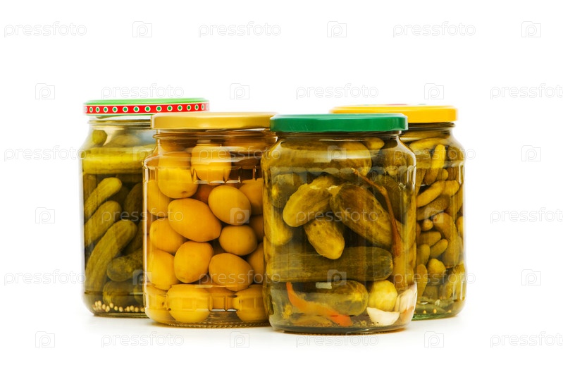 Маринованные огурцы и оливки в банке