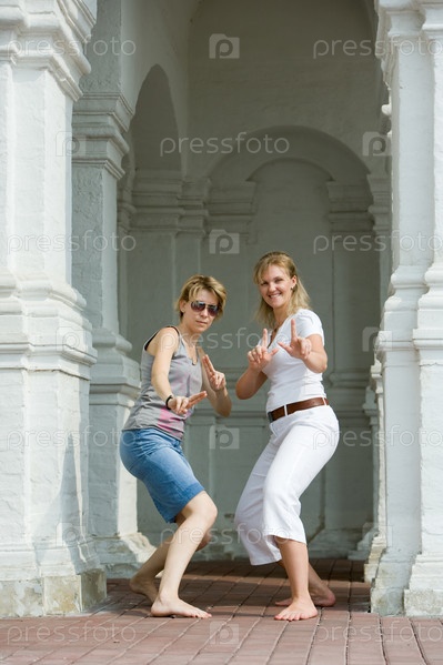 Две женщины у входа в здание