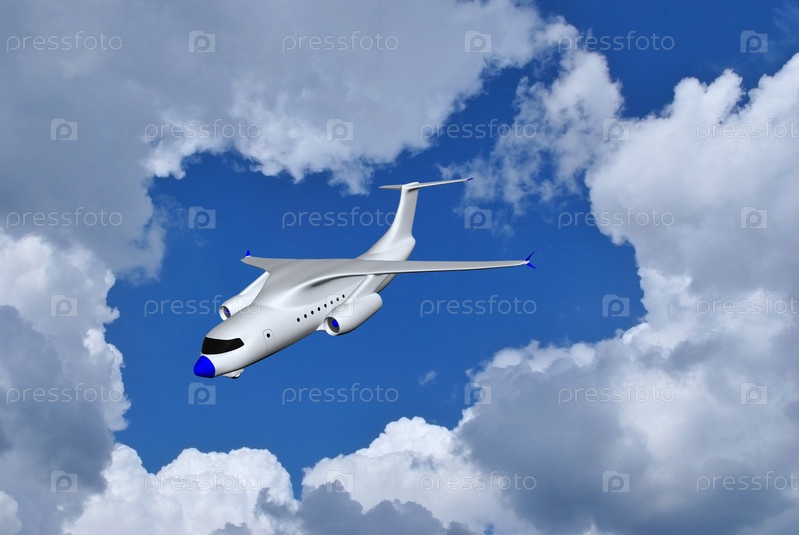 Трехмерная иллюстрация самолета в небе