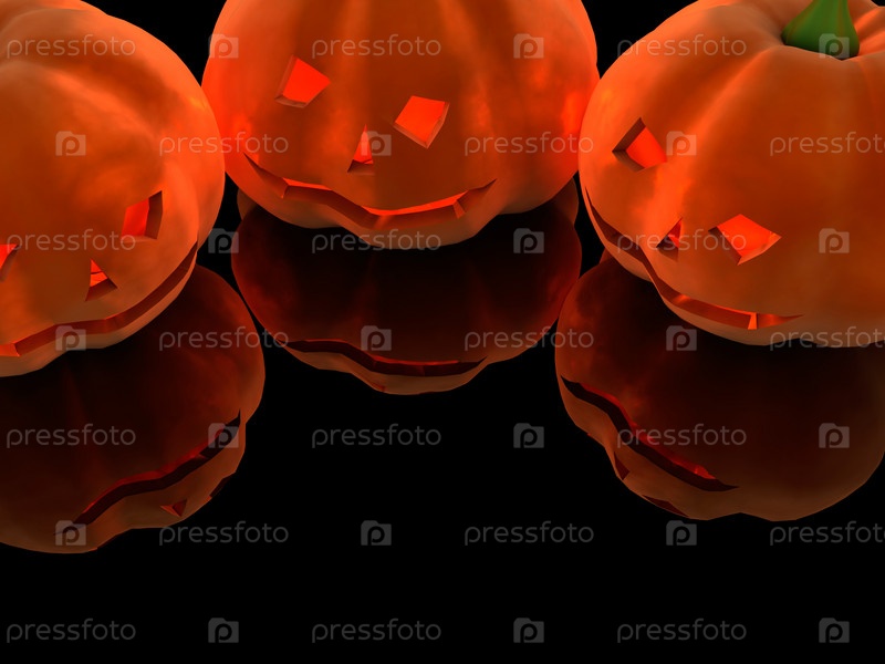 Три тыквы на Хеллоуин крупным планом на черном фоне