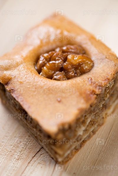 Пахлава с орехами и медом, крупный план