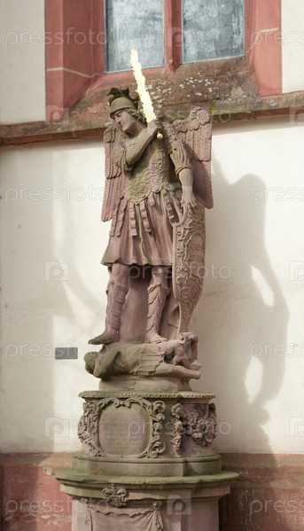 Архангел Михаил с пылающим мечом. Статуя в нише церкви Святого Креста (1700) в Оффенбурге, Германия