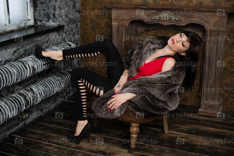 Модель позирует в старинном интерьере