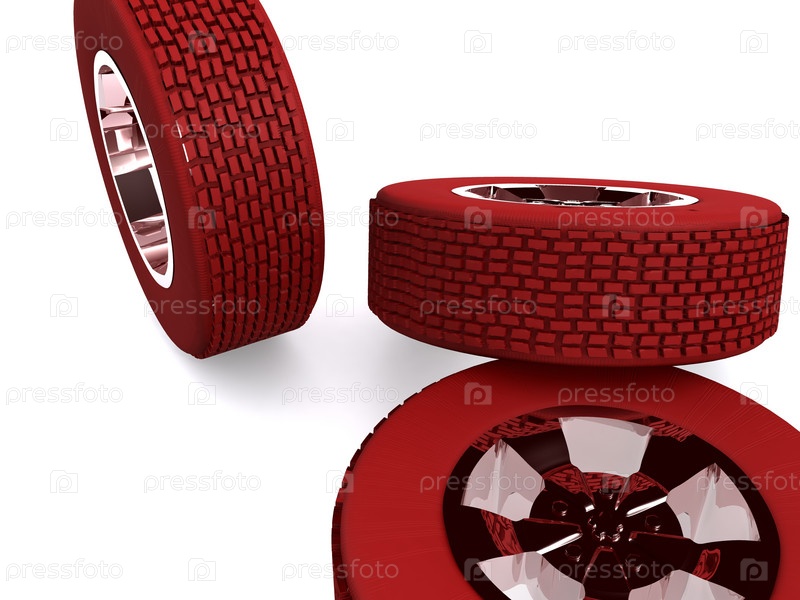 Красные колеса автомобиля на белом фоне