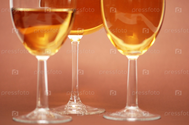 Три фужера с вином на розовом фоне