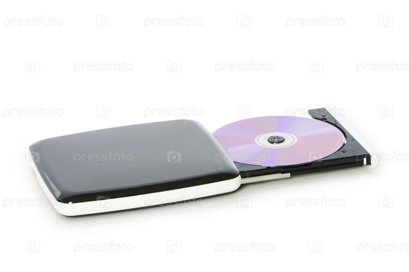 Внешний дисковод DVD, изолированный на белом