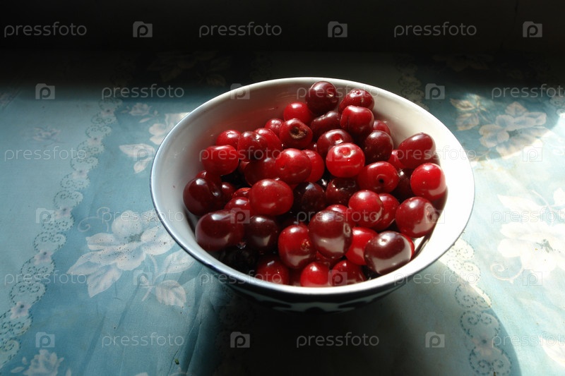 Вишни в фарфоровой чашке