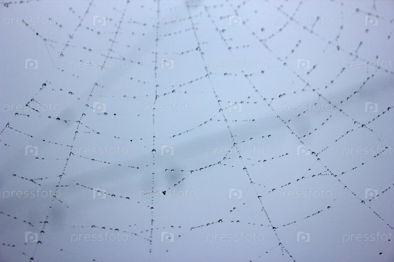 Паутина с каплями дождя крупным планом