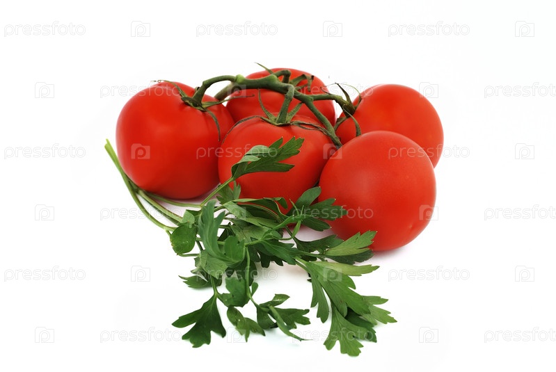 Гроздь томата и петрушки, изолированная на белом фоне