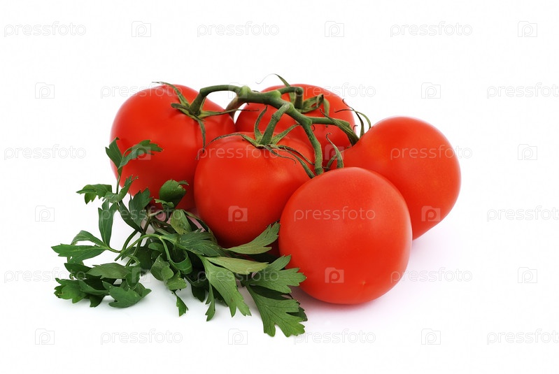 Помидоры и петрушка, изолированные на белом фоне