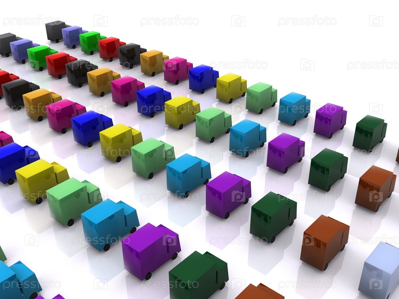 Разноцветные трехмерные грузовики