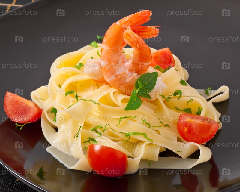 Паста с креветками и помидорами