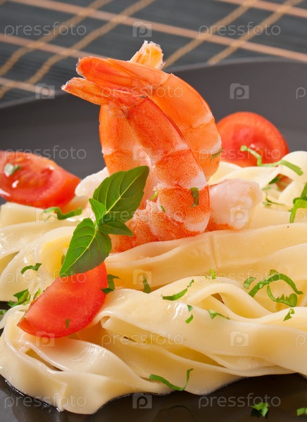 Паста с креветками и помидорами