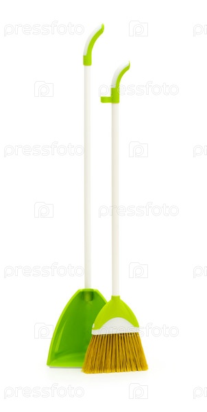 Веник и совок на белом фоне