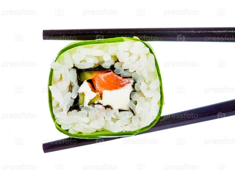 Суши ролл на белом фоне