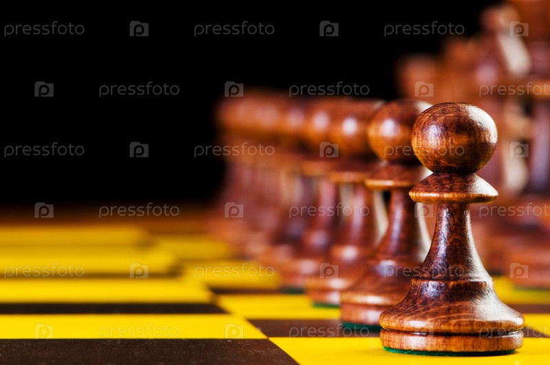 Шахматные фигуры, выстроенные в ряд на доске